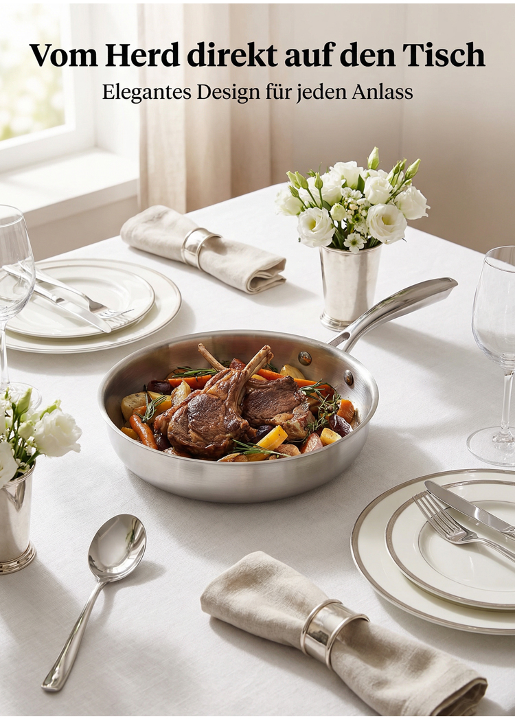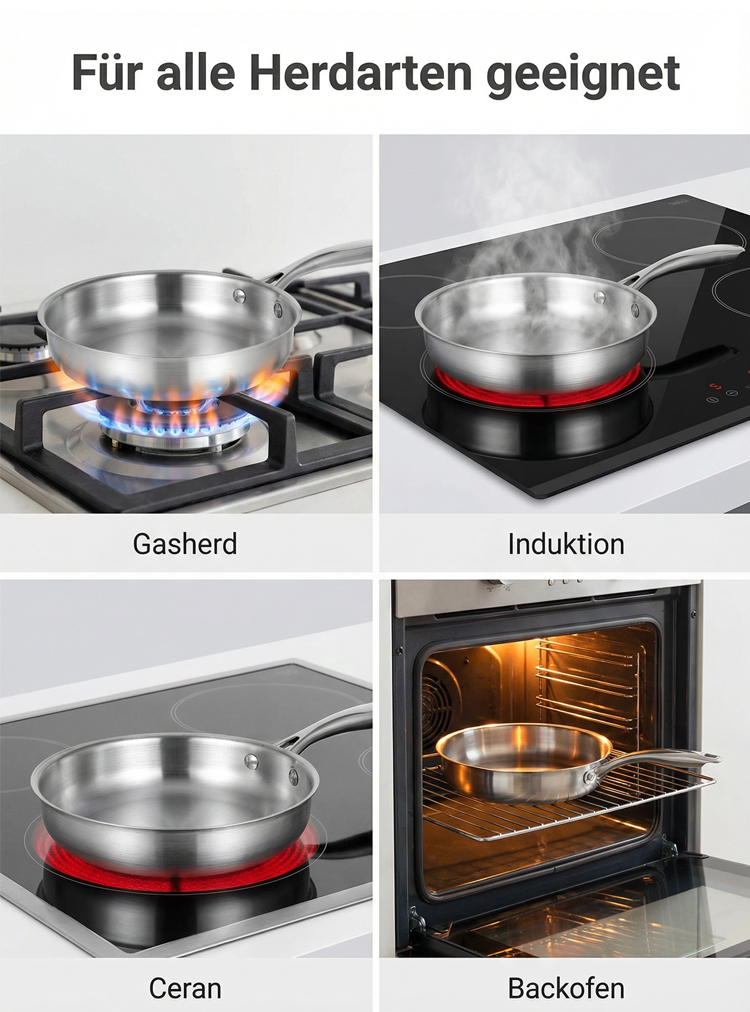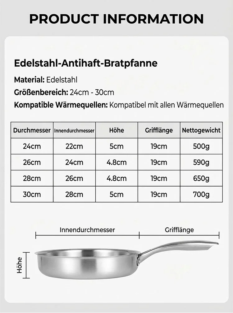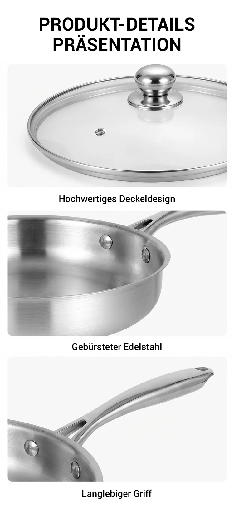 Edelstahl-Bratpfanne ohne Beschichtung | 18/10 Chirurgenstahl | Null Giftstoffe, PFOA-frei | Physikalische Anti-Haft-Wirkung, langlebig & robust 🍳